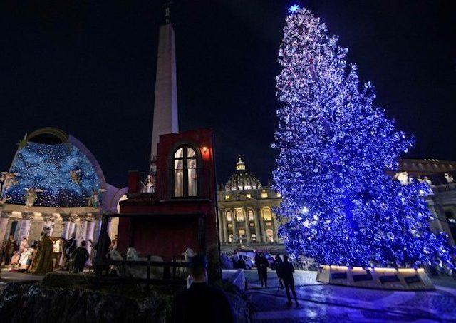Na Námestí sv. Petra vo Vatikáne rozsvietili stromček a predstavili betlehem