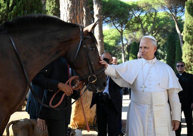 Pri stretnutí so zamestnancami poďakoval za ich starostlivosť o rozsiahle záhrady a viac ako 3-tisíc druhov rastlín. Nechýbala ani chvíľa obdivu k prírode – pápež nakŕmil japonské koi kapre, pohladkal kone, požehnal ďalším zvieratám i biodynamickým viniciam. Zdôraznil tak, že integrálna ekológia znamená starostlivosť nielen o prírodu, ale aj o človeka.
