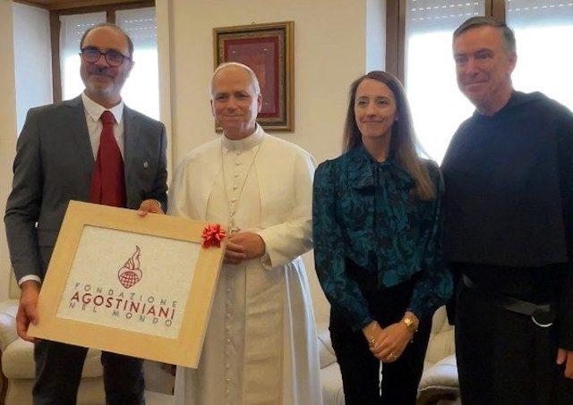 Deň po narodeninách Svätého Otca pokračujú prejavy náklonnosti zo strany všetkých, ktorí sa pohybujú v kruhu diel, ktoré páter Prevost ako generálny prior pomáhal zakladať a podporovať. Medzi nimi je aj Nadácia Augustiniáni vo svete, ktorá sa stretla s pápežom v generálnej kúrii augustiniánov, v rámci generálnej kapituly. Nadácia, ktorá má pozitívny vplyv na život 25-tisíc ľudí v Afrike (Alžírsko, Mozambik, Nigéria, Keňa, Konžská demokratická republika, Togo), Ázii (India, Indonézia), Amerike (Kuba, Ekvádor, Peru, Venezuela) a Európe (Ukrajina, Taliansko), sa zaoberá ochranou ľudských práv, vzdelávaním a spravodlivým a udržateľným rozvojom.