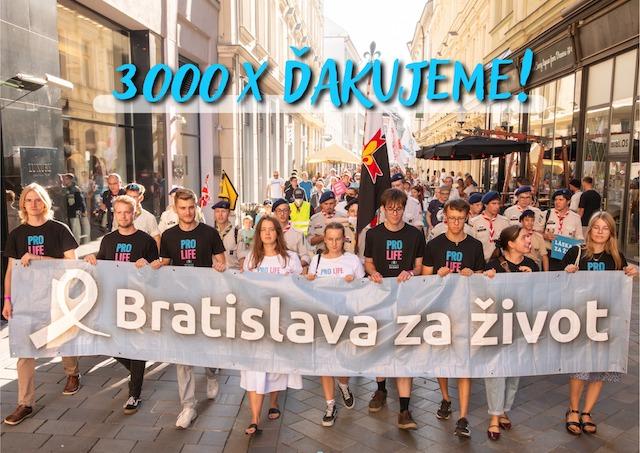 Bratislava 20. septembtra (TK KBS) Približne tritisíc ľudí všetkých vekových kategórií sa v sobotu zišlo v centre Bratislavy na pochode Bratislava za život.
