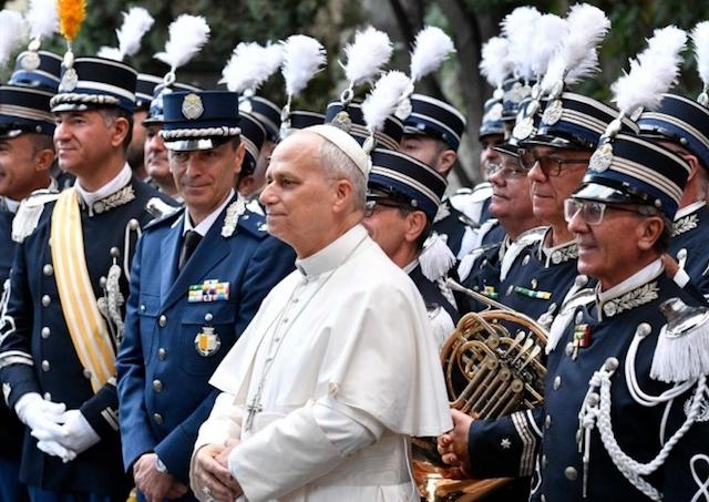 Drahí bratia, ako členovia Žandárskeho zboru Mestského štátu Vatikán, vaše povolanie nie je len zamestnaním – je to služba pre dobro Cirkvi. Aj vaša každodenná práca totiž vydáva svedectvo o evanjeliu. Preto sa nikdy nehanbite za príklad, ktorý môžete dať. Často – a viete to z vlastnej skúsenosti – vaša nenápadná a spoľahlivá prítomnosť môže vyjadriť evanjeliový štýl nie slovami, ale už len pozorným pohľadom či starostlivým gestom, ktoré chráni každého človeka okolo vás.