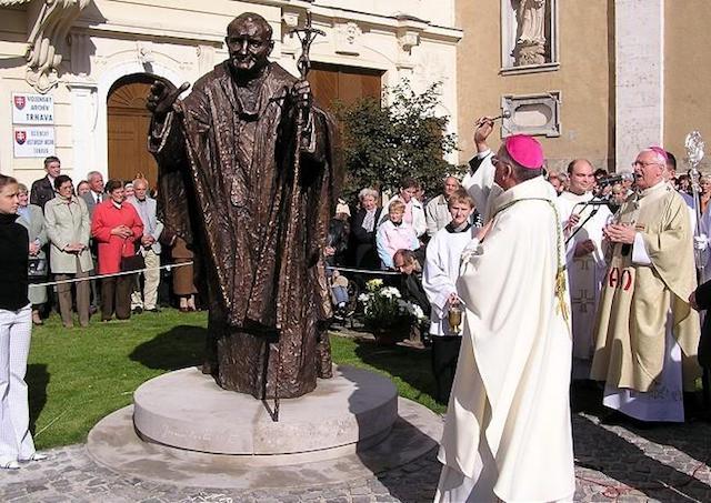 Trnava 17. októbra (TK KBS) Pred 20 rokmi odhalili na Univerzitnom námestí v Trnave sochu svätého poľského pápeža Jána Pavla II.