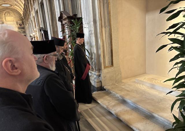 Biskupi sa pomodlili pri hrobe pápeža, kde zverili do Božích rúk jeho dušu a poďakovali sa za jeho pontifikát, počas ktorého osobitne pamätal aj na cirkvi východného obradu.