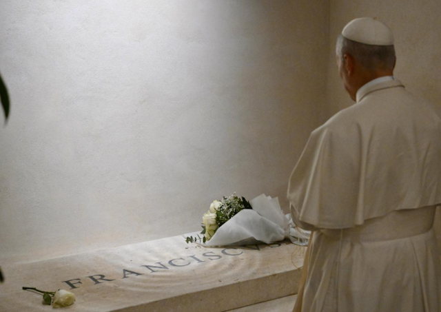 Pápež Lev už 10. mája, len dva dni po svojom zvolení na Petrov stolec, navštívil hrob argentínskeho pápeža, ktorý denne navštevujú mnohí veriaci a pútnici. Popoludní novozvolený pápež položil na hrob kvety a krátko sa pomodlil.