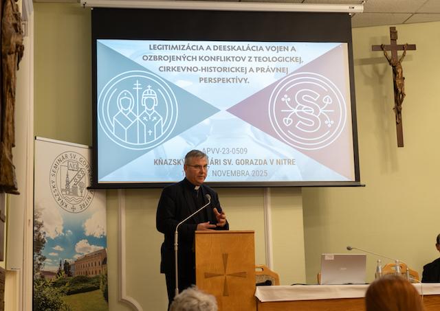 Nitra 19. novembra (TK KBS) V priestoroch Kňazského seminára sv. Gorazda v Nitre sa 12. – 13. novembra uskutočnila rozsiahla interdisciplinárna vedecká konferencia „Legitimizovanie a deeskalácia vojen a ozbrojených konfliktov z teologickej, cirkevno-historickej a právnej perspektívy“.
