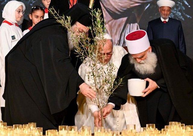 Libanon je preslávený svojimi majestátnymi cédrami, olivovník je však tiež základným kameňom jeho dedičstva. Olivovník nielenže zdobí priestor, kde sa dnes zhromažďujeme, ale je uctievaný aj v posvätných textoch kresťanstva, judaizmu a islamu ako nadčasový symbol zmierenia a pokoja. Jeho dlhý život a schopnosť prežiť aj v najdrsnejších podmienkach sú obrazom vytrvalosti a nádeje – čností potrebných na pestovanie pokojného spolužitia. Z tohto stromu pramení olej, ktorý lieči – balzam na telesné i duchovné rany – a zjavuje bezhraničné Božie milosrdenstvo voči všetkým trpiacim. Jeho olej tiež dáva svetlo a pripomína povolanie osvecovať naše srdcia vierou, láskou a pokorou.