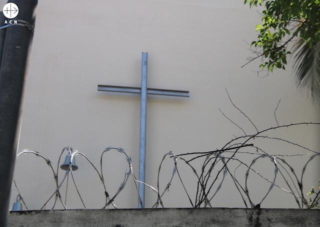 Ostnatý drôt okolo farnosti vo Venezuele.