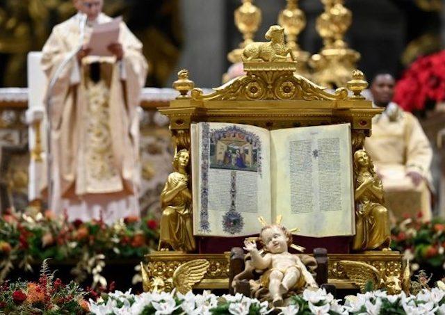 Aj prológ štvrtého evanjelia je hymnom a jeho hlavným aktérom je Božie Slovo. „Slovo“ je to slovo, ktoré koná. To je vlastná črta Božieho slova: nikdy nezostáva bez účinku. Keď sa na to pozrieme bližšie, aj mnohé z našich slov prinášajú účinky, niekedy neželané. Áno, slová konajú. A predsa nás vianočná liturgia stavia pred prekvapenie: Božie Slovo sa zjavuje a nevie hovoriť; prichádza k nám ako novorodenec, ktorý iba plače a bľaboce. „Slovo sa stalo telom“ (Jn 1, 14) a hoci vyrastie a raz sa naučí jazyk svojho ľudu, teraz hovorí iba jeho jednoduchá, krehká prítomnosť. „Telo“ je radikálna nahota, ktorej v Betleheme i na Kalvárii chýba dokonca aj slovo; slovo nemajú ani mnohí bratia a sestry, zbavení dôstojnosti a umlčaní. Ľudské telo si žiada starostlivosť, volá po prijatí a uznaní, hľadá ruky schopné nežnosti a mysle otvorené pozornosti, túži po dobrých slovách.