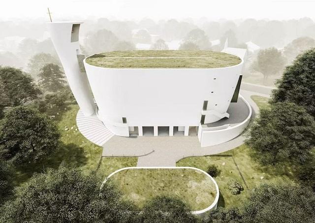 Veža kostola bude postavená pomocou 3D tlače, pričom rozhodnutie, či bude celý kostol vytlačený touto technológiou, má padnúť začiatkom roka 2026. Kostol bude zložený z 520 blokov, ktoré sa do seba zapájajú ako puzzle a majú vlnitú štruktúru s akustickou funkciou.