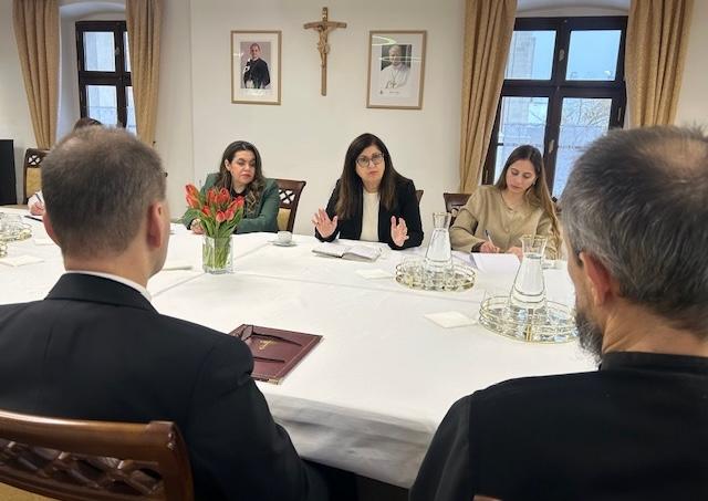 Bratislava 16. februára 2026 (TK KBS) V Bratislave sa dnes konalo stretnutie zástupcov Konferencie biskupov Slovenska s Dr. Varsen Aghabekianovou, ministerkou zahraničných vecí štátu Palestína. Apoštolskú nunciatúru zastupoval Ján Bittšanský, za KBS boli prítomní Mons. Jozef Haľko a vladyka Milan Lach. Na podujatí sa zúčastnili aj zástupcovia Slovenskej katolíckej charity a Pápežskej nadácie ACN – Pomoc trpiacej Cirkvi, ktorí predstavili projekty humanitárnej pomoci a spolupráce so zraniteľnými komunitami.