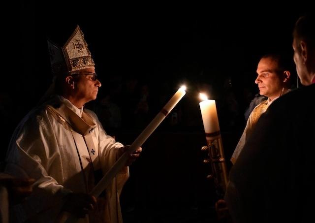 Takto, drahí bratia a sestry, na začiatku tejto slávnosti diakon zveleboval svetlo zmŕtvychvstalého Krista, symbolizované veľkonočnou sviecou. Z tejto jedinej sviece sme si všetci zapálili svoje svetlá a každý z nás, nesúc plamienok zapálený z toho istého ohňa, rozžiaril túto veľkú baziliku. Je to znak veľkonočného svetla, ktoré nás v Cirkvi spája ako lampy pre svet. Na diakonovo zvolanie sme odpovedali „amen“, čím sme potvrdili svoje rozhodnutie prijať toto poslanie, a o chvíľu zopakujeme svoje „áno“, keď si obnovíme krstné sľuby.