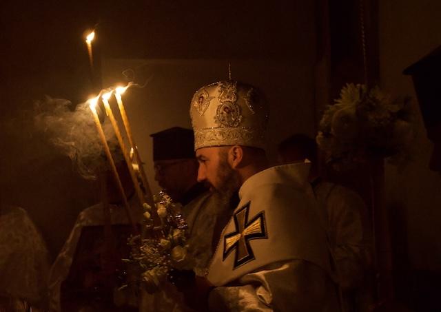 Nasledovalo slávenie archijerejskej svätej liturgie, v ktorej sa čítala radostná zvesť evanjelia, prológ z Jánovho evanjelia vo viacerých jazykoch, nielen biblických – gréčtine, latinčine a cirkevnoslovančine, ale aj po slovensky a po rusínsky. Je to obraz zvesti, ktorá patrí a je ohlasovaná všetkým ľuďom. Vo svojej homílii vladyka Jonáš ohlásil radostné Kristovo vzkriesenie, ktoré zvestujú všetky predobrazy spomínané v spevoch utierne a liturgie, ale poukázal na to, že v samotnom evanjeliu sa o vzkriesení nehovorí. Evanjelista Ján vo svojom Prológu akoby „červenou niťou“ hovorí to najpodstatnejšie, to čo všetky tieto predobrazy umožňuje pochopiť. Boh – Slovo je na počiatku stvorenia. Boh je život a svetlo. Boh je počiatkom našej spásy. Tento Boh prichádza na svet, stáva sa človekom a pre našu spásu zomrel a vstal z mŕtvych. Vladyka Jonáš na záver dodal: „Dnes sa veľmi teším, že sme tu spolu, že oslavujeme nášho Boha, že oslavujeme jeho vzkriesenie, pretože ak by nevstal z mŕtvych, márna je naša viera, márna je naša nádej.“
